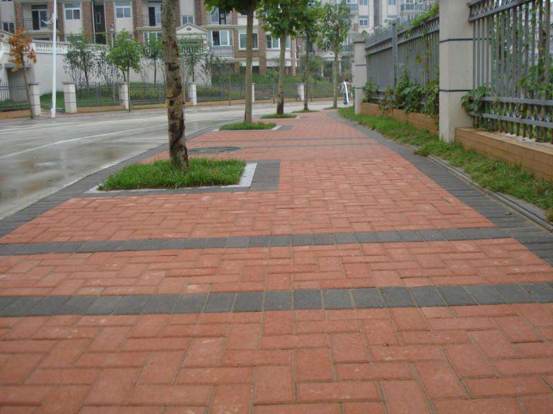 其優(yōu)異的透水性及保水性來源于該產品20%左右的氣孔率。如此之大的氣孔率,一般人會懷疑它的強度會不會象輕質耐火磚那樣小呢?其實該產品強度可以達到90kgf/cm2以上,鋪設在停車場,可以過載重為10t以上的汽車。國外,比如日本等,城市人行道、步行街、公寓停車場、機場等地方基本上都是以該產品來代替水泥、石材硬化路面。該產品為什么有如此之大的強度呢?一是該產品厚度達到60-80mm,二是該產品在調合配料時加入了特殊結合劑,三是該產品經過了1200℃左右溫度燒成。益鑫磚機透水磚盡管產品氣孔率大,但強度依然得到保證。