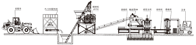 磚機標(biāo)配:成型主機、液壓站、PLC智能電控箱、送料帶、送板機、送磚機