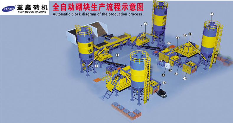益鑫磚機(jī)全自動(dòng)砌塊磚機(jī)生產(chǎn)線工藝流程圖解析